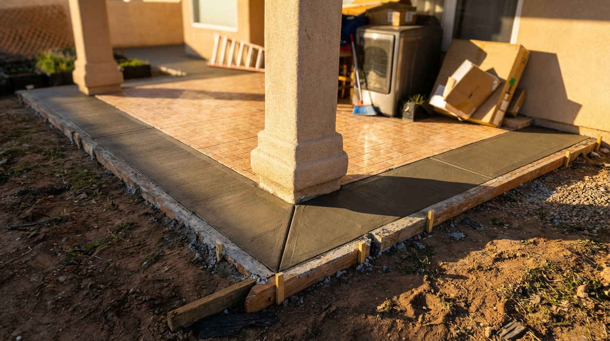 New concrete patio slab installation in Albuquerque, NM